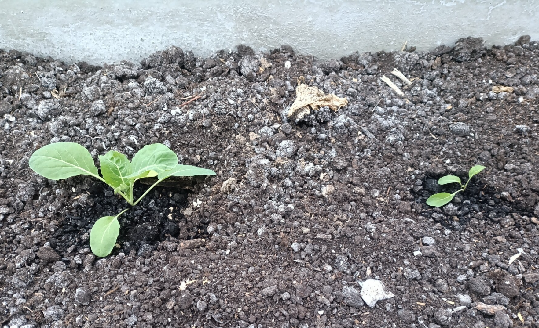 Ik heb in de kas nog twee late bloemkoolplanten staan met het idee van we zien wel. Deze staan netjes! Ondanks dat ze nog niet zo groot zijn, zijn ze blijkbaar wel sterk!