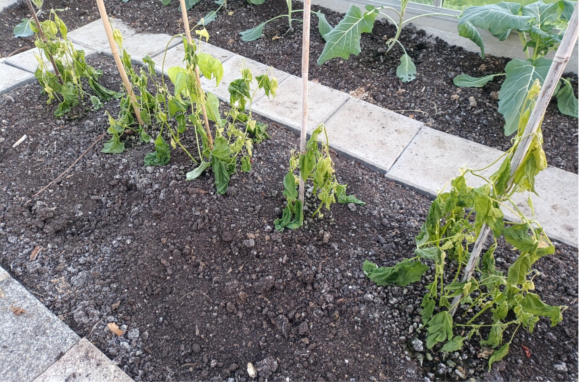 Ik schreef al eerder over mijn bonenexperiment, deze hebben de sneeuwperiode niet eens gehaald. Zodra het ietsje vroor in de kas, stonden ze heel zielig en viel er niks meer te redden.